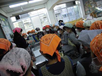 自分たちで水菜を切ったり