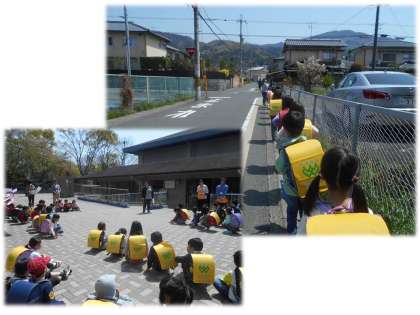 1年生にとっては初めての自分たちでの下校です。帰る方面に合わせて集合し,並んで下校です。天気もよかったので,気持ちのよい下校時刻となりました。しっかりと並んで,左右をよく見て,まだまだ緊張しながらの1日でした。