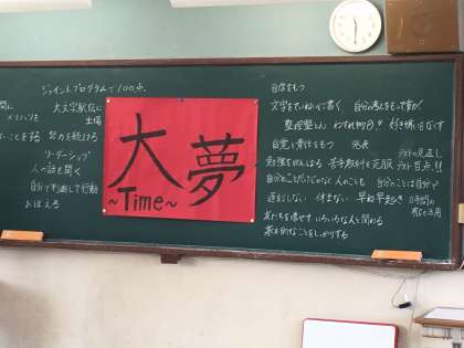 6年生になり,はじめての学年集会を行いました。学年目標は「大夢(たいむ)〜TIME〜」大きいな夢をそれぞれがもち,時間を大切にして過ごそう!というものです。