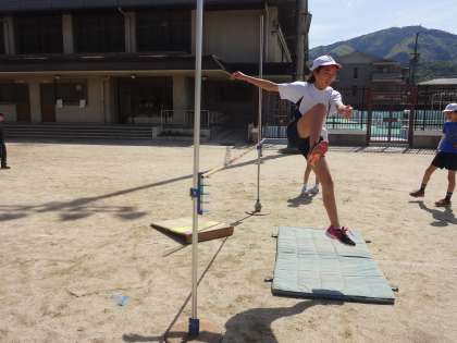 高跳びの学習を始めました。4年生で跳んでいたことをいかしながら,跳んでいます。どこまで跳べるかな。