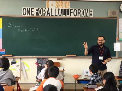ALTの先生が出す問題に楽しみながら,必死になって答えています。