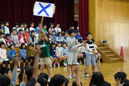 4月に新しい仲間を迎えて1カ月が経った今日,1年生を迎える会が行われました。6年生と手をつなぎ,笑顔で入場する1年生。座り方も話の聞き方も,校長先生に120点をもらえる程の花丸!この1カ月でもうすっかり小学生の顔です。