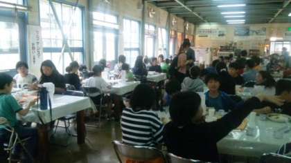 朝が早かったので、待ちに待った食事でした。大盛りにする子も多く、しっかり食べていました。食後は玉ねぎ掘りをします。