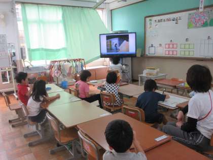 昨日は,4年生の社会見学で,東北部クリーンセンターへ行きました。星の子学級から参加した児童に,昨日の写真を見ながら,星の子学級のみんなに,どんなことを学習したのか話してもらいました。大きなクレーンや,焼却炉から出たアルミのかたまりなどを見て,みんな興味津々で聞いていました。