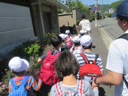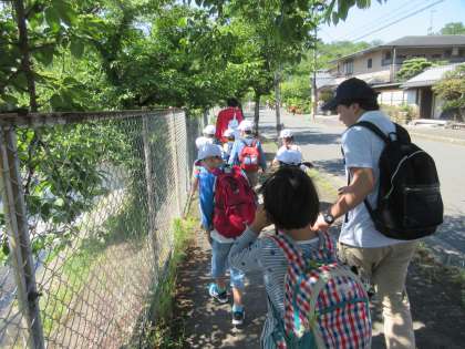 バス停まで歩く道は,行きも帰りも,友だちや先生と手をつないで並んで歩くことができました。