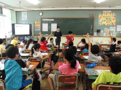 栄養教諭の梅原先生に給食について教えていただきました。栄養教諭の先生が6か月前からみんなのために献立を考えて下さっていることに驚いたり,給食調理員さんが大変な思いをして作って下さっていることを知って,「感謝して食べよう。」「好き嫌いをしないようにしないといけないな。」「1500枚以上のお皿を洗うって大変だな・・・」などと話をしていました。3年生の頃と比べて,食缶がからになることが増え,心や身体の成長を感じています。毎日当たり前のように食べている給食について改めて考える機会となり良かったです。