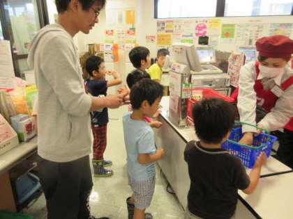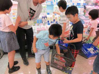 今日は,4,5月のお誕生日会をしました。そのために,昨日は,近くのスーパーに買い物に行きました。前日に何を作るか話し合い,買う物をメモしました。そのメモを持って行って,どこにあるかな〜?と,みんなで探しながら買いました。