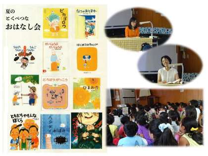 図書ボランティアさんが「おはなし会」をしてくださいました。ミーティングルームに集まった子どもたちは,どんな本を読んでもらえるのか,ワクワクしていました。およそ100人が会に参加しました。