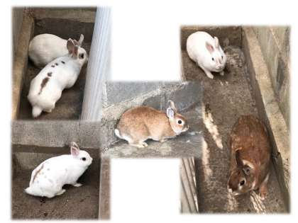 うさぎは全部で5羽います。6羽写っていますが,上の白いうさぎが同じうさぎです。