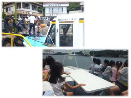 少し曇り空で日差しが弱く,風が気持ちよいので,子ども達は船の旅を満喫しています。
