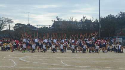午後の競技の健闘を誓って,応援合戦が繰り広げられた後は,4年生の団体演技です。