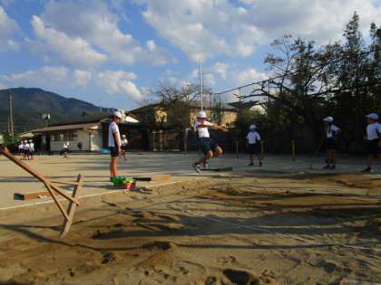 5年生になって初めての幅跳びでしたが,上手に取り組むことができていました。