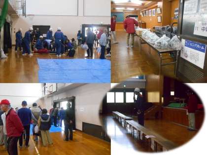 11日(日)明徳学区総合防災訓練が行われました。各町内ごとに集まり,避難所である明徳小学校に移動。その後,防災に関するDVDを視聴されたり,心肺蘇生や簡易担架の作成から運搬練習。消火器の活用の仕方,アルファ化米の作成などを体験され,いざという時に備えて訓練をされました。各町内,子どもたちからお年寄りまで230名ほどの方々が避難訓練として本校に集まられました。