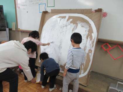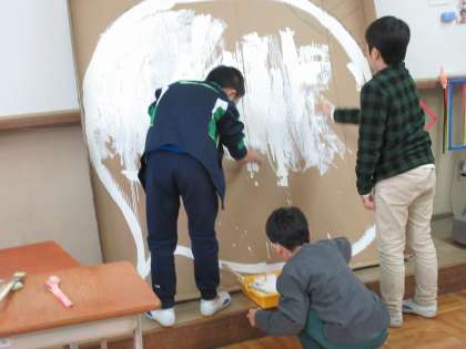 星の子学級は,今年の学習発表会で『大きなかぶ』をします。今日は,みんなで大きなかぶを作りました。大きなダンボールに大きな刷毛で色を塗っていきました。「た〜のしい〜♪」と言いながら,みんな楽しそうに活動しました。