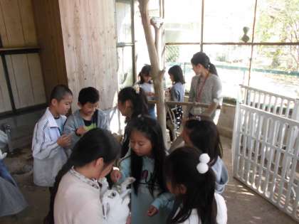 普段は小屋の外から見ているだけのうさぎにふれ合うことができ,