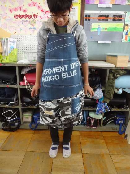 家庭科の学習でエプロンを作っています。ミシンを使い,完成に近づいています。早く完成させて調理実習で使いたいと思います。