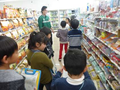 グループに分かれてのインタビュー,今日が最後の日でした。電気屋さん,コンビニ,いつも前を通っているけれども,じっくりとお話を聞いたり見たりすることは初めての子どもたち。知りたいことを練習通り礼儀正しく尋ね,興味深く聞いていました。