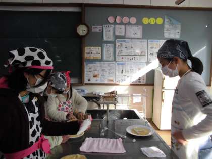 薄く生地を伸ばして,上手に裏返して焼くことができていました。