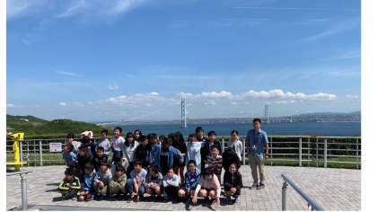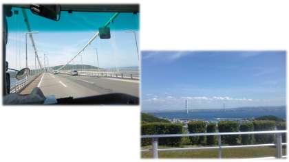 淡路SAに到着。明石海峡大橋をバックに集合写真を撮りました。