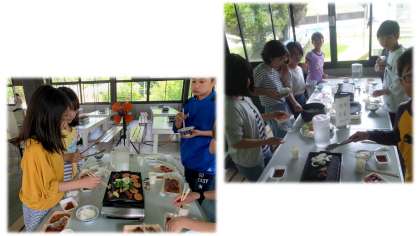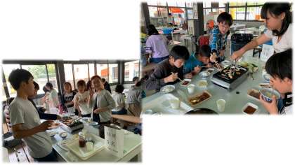 予定より少し遅れての出発となりましたが,淡路島牧場に到着。クラス写真の後,バーベキューのお昼ご飯です。グループで声をかけながら食事が始まりました。