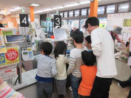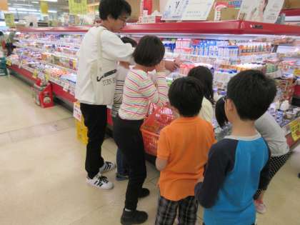 まずは,作るものを決めます。4・5月のお誕生日の友だちが,ホットケーキがいいと言うので,今回は,それに決まりました。デコレーションに使う物も含めて,何が必要かを考え,買う物をメモします。そのメモを見ながら,みんなで買い物へ。「こっちにあるよ」,「さっきあったよ」など,助け合いながら無事買い物ができました。