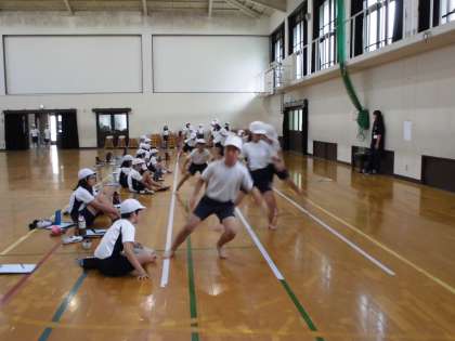 反復横跳び,握力,ソフトボール投げ,上体起こし,長座体前屈など1つ1つチャレンジしていきました。ソフトボール投げでは,昨年の記録と比べながら,「○○メートルもとぶようになった!!」と喜んでいる姿,友達の記録に一緒になって喜ぶ姿がありました。反復横跳びでは,ヘトヘトになって座り込むほど全力で取り組んでいました。記録を数える方も見逃さないように必死でした。自分の力を知ったり,友達の頑張りを見つける良い機会になりました。