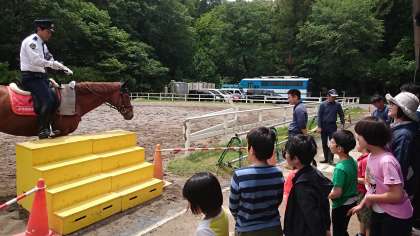 中でも特に楽しかったのは,京都府警察の平安騎馬隊で馬に乗せてもらった時は,緊張していましたが,とっても楽しかったようです。