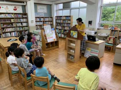 前半は,図書室の本に貼ってあるラベルについてのお話でした。ラベルに貼ってある数字によって,本棚に返す場所が決まっていることを教えていただき,その後,何冊かの本を実際に返してみました。一人では分からなくても,友だちと協力すれば,無事に返せた子もいました。今後,ラベルの数字を意識して返せるよう,声掛けしていきます。