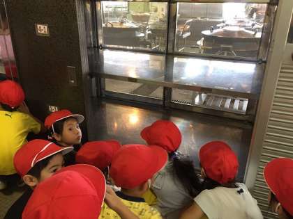 今回は給食室は2クラスごとに見学させてもらい