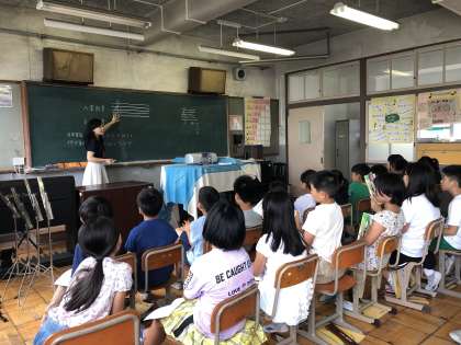次の学習からは,グループでいろいろな楽器を重ね合わせて,音の響きの変化を感じとって演奏していきます。