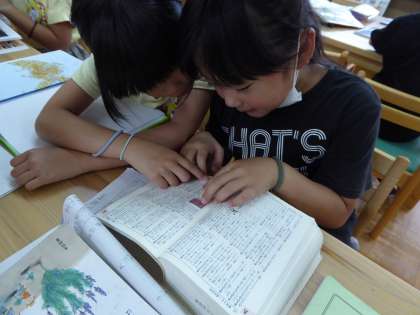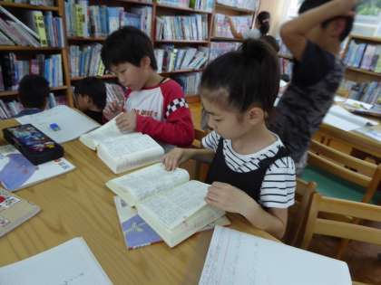国語で図書室を使って学習しました。気になったことばやものについて調べていきました。図鑑で調べる子や辞書を使う子など,様々な発見があったようです。