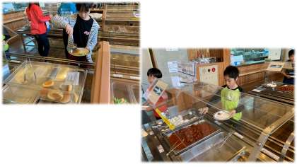 今日の朝食は食堂です。バイキング形式も3回目になり,自分たちだけでもどんどん進められるようになっています。