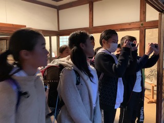 めいとく学習で実相院について調べ学習をしているグループがフィールドワークに出かけました。丁寧にお話していただき,たくさん質問にも答えていただきました。これから,各グループがそれぞれのテーマに沿って,調べ学習を進めていきます。