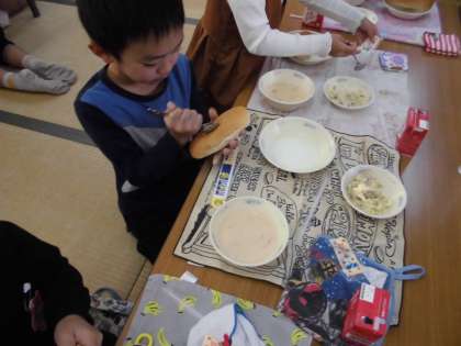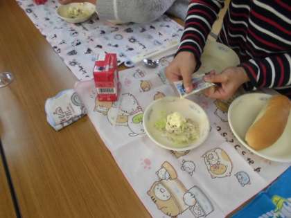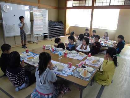 今日は1年1組が初めてパクパクルームで食べました。4時間目の食に関する指導で,みんなが楽しく食べられるようにマナーよく食べようということを考えたので,