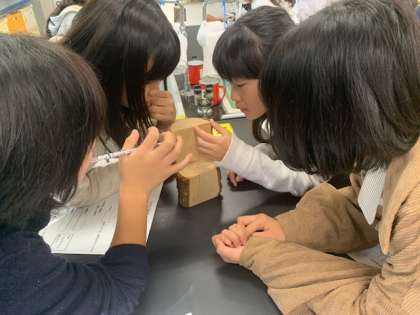 今日は青少年科学センターで,実験学習を行いました。6年2組は,森からのおくりものというテーマです。木の観察やいくつもの実験を通して,その特性を捉えました。昔からさまざまな場面で木が利用されてきました。近年木材以外のものもたくさん出てきていますが,今なお木材は多くのものに利用されています。それは,木の特徴を理解して,金属やプラスチックにはない良いところをふんだんに生かしているからです。