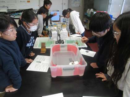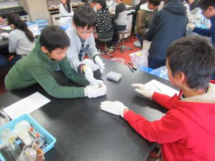 科学センター学習,1組は「目には見えない気体の世界」化学の学習を行いました。気体は目に見えません。では,ドライアイスから出る白い煙は何なのか。疑問に思ったことから実験をして,その疑問を解き明かしていきました。