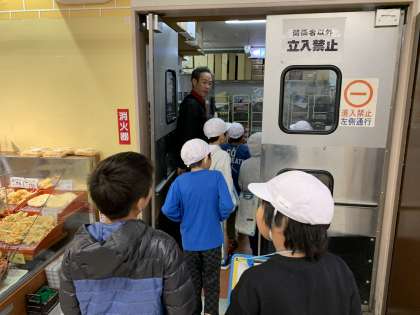 今日は生活科の学習で,町たんけんに行きました。1日目は,ブレーメン(パン屋)とコープいわくら(スーパー)にそれぞれお世話になりました。