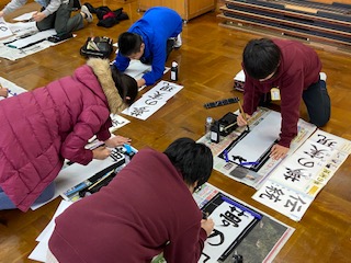 書き初めをしました。心を落ち着けて,一画一画丁寧に書いていきました。「冬休みはうまくいったのに…。」「冬休みよりうまくいった。」など人によって思いは様々でしたが,全員が時間内に書き上げることができました。