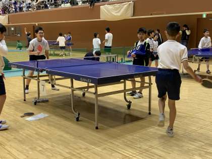 今日は島津アリーナで全市卓球交流会がありました。本校からは7チーム計23名の児童が出場しました。その中で男子のAチームが何度も追い込まれながらも逆転するなど活躍し,ベスト4に輝きました。