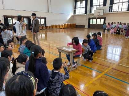 昨日に続き,今日は,中学年と星の子学級の豆つまみ大会を行いました。今日のために練習してきた学級が多かったようで,大変盛り上がり,白熱した戦いとなりました。どの学級も楽しんで取り組むことができました。
