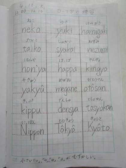また,ローマ字も習います。楽しみですね。習ったらいろいろな言葉をローマ字で書いてみるといいですね。