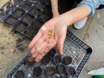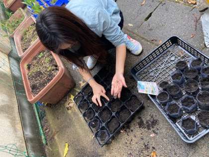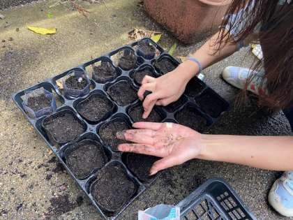 今日はツルレイシの種を植えました。本来ならば皆さんと一緒にやる予定でしたがこのままでは観察に間に合いそうもないので先生たちで植えさせてもらっています。