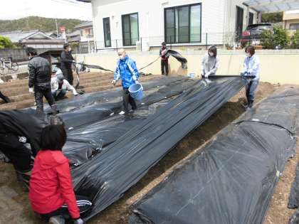 4/22 めいとく農園 マルチ敷き
