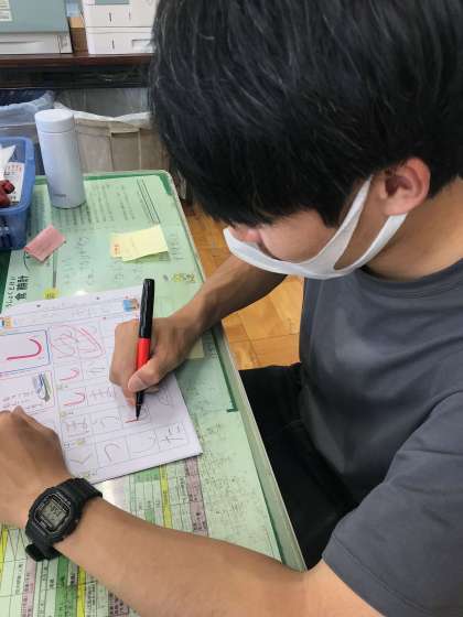 かえってきた かだいの なかには,もっと じょうずに なってもらえるように,せんせいたちが あかペンで なおしているところが あるかもしれません。けしゴムで きれいに けして,もういちど てほんをみながら,れんしゅうしなおしてみてくださいね!