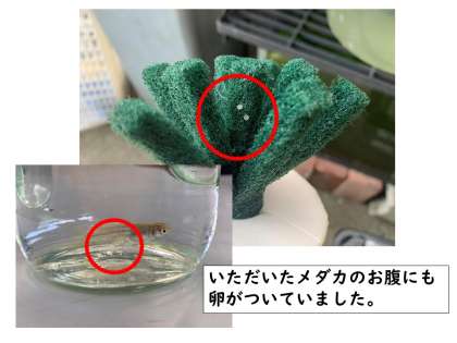 理科では,メダカを観察しながら学習する単元があります。昨年に引き続き,畑の先生のご自宅で育てておられるメダカを譲っていただきました。すでに卵がついているメダカもいました。