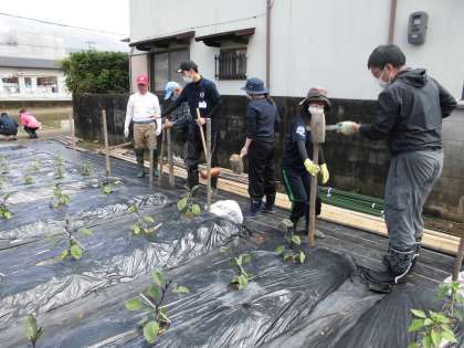3年生 野菜の支柱立て