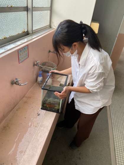 4年2組前のろうかに,水そうが…