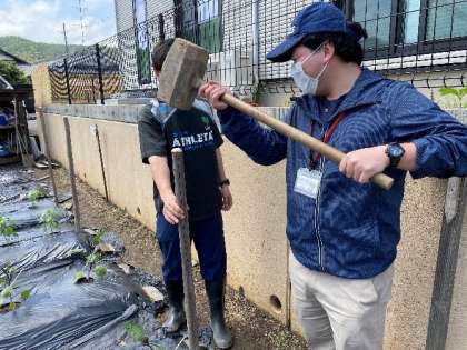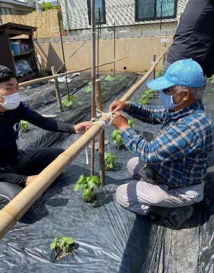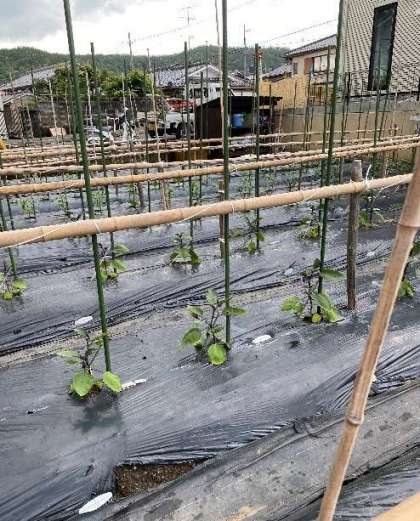 先日植えた明徳農園の2年生の野菜が,順調にすくすく元気に育っています。葉が増え,背丈が伸びました。今日は畑の先生のご指導のもと,教職員で支柱を立てました。これで,野菜がぐんぐん大きくなっても安心です。ナスは,花が咲き始めているものもあります。2年生の皆さんと観察する日が楽しみです。