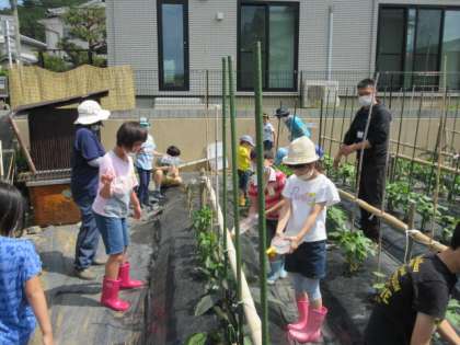今年度の星の子学級は,10人になりましたが,帰りはちゃんと並んで歩いて帰ることができました。これからも,暑い日が続きそうなので,水やりをがんばります。