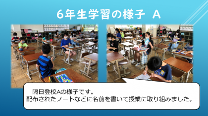 昨日から本日にかけて隔日登校でした。AとBに分かれますが,みんな一生懸命に学習に取り組んでいます。